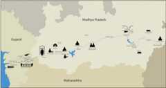 Narmada’s sacred landscape seems inseparable from her physical presence. Rising as a small stream in the central highlands of the Indian peninsula, she flows from east to west in the company of her two brothers, the Vindhya and Satpuda Hills. Three km from the source, she drops 30 metres at Kapildhara waterfall and loops further through Mahadeo Hills to take a second fall at Dhuandhar near Jabalpur. Then heading west through the wide Narmada Valley, she falls 274 metres in 483 km through two more waterfalls and numerous rapids before reaching her 27-km-wide estuary near Bharuch.