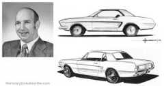 In the early 1960s, Ford started a “special car” project for an entirely new concept vehicle, but it was kept pretty secret. Company executives ruminated on what they should call the new car: Allegro, Avanti, Torino, and Cougar were all suggested. In late July, 1962, “I was busy working on the 1965 Ford Galaxy,” Halderman recounted years later, “and my boss, Joe Oros, told me that there was a meeting at 8:00 a.m. to pick a design for a new car, and he wanted me to do some drawings. I told Joe I’m busy working on this project ’til 11:00 each night, and he said he didn’t care, do some sketches. So late that night I did four or five, and brought them in at 8:00 the next day. They put a whole bunch up on the wall, and kept going along and finally, they picked mine, but it was only the side view.”
