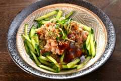 ブリの濃厚さと花椒の軽やかなシビれが相性抜群。大葉とねぎのさわやかな風味と食感、みそのうま味が合わさり、箸が止まらないどころか、本当に名前どおりにお皿までキレイにしたくなる勢いのウマさです。
