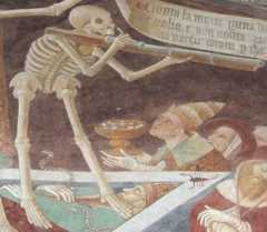 Two types were simultaneously brought to practice, the schioppi (handgun) in the beginning, and later the arquebus à croc (not to be confused with cannons). In this picture, the Death is depicted on a fresco with an early schioppo gun: