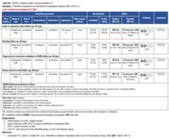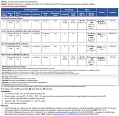 Patients who are critically ill with COVID-19 pulmonary disease and dysfunction needing significant ventilatory support with invasive mechanical ventilation or ECMO have the highest risk of mortality. Pharmacologically, we recommend treating them similarly to those on non-invasive ventilation or high-flow nasal cannula. Corticosteroids are strongly recommended in this category of critically ill patients as trials have demonstrated a mortality benefit [79]. In ad-dition to steroids, the panel recommends using either IL-6 inhibitors (tocilizumab is preferred over sarilumab) in critically ill patients who have elevated inflammatory markers like CRP. In situations where IL-6 inhibitors are not available, baricitinib can be used in mechanically venti-lated patients as a small trial showed a mortality benefit in this population [278]. Most other COVID-19 therapies studied in other severities have either not demonstrated benefit or not been studied in this population.
