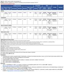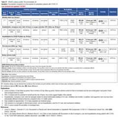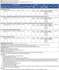 The guideline panel has developed a point-of-care clinical decision aid (Figure2) to help prescribersidentify the mostappropriate treatment options for ambulatory patients with COVID-19. Prescribers canapply these guidelines by firstidentifying the baseline risk for severe outcomes for COVID-19 for their individual patient, such as need for hospitalization, non-invasive or invasive ventilation, progression toICU care, or death.Table 1 lists conditions that are considered high-risk factors of progression to severe COVID-19 outcomes, and Table 2 lists other risk factors that may confer increased risk for severe COVID-19 outcomes. Patients may be considered “high risk” if they have one factor associated withhigh risk of progression or several factors associated with increased but nothigh risk of progression. If the patient does not have a high-risk condition or lacks a risk factor, the patient can be considered without risk factors for progression to severe disease.