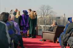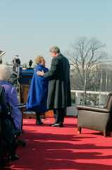 Following the Swearing-In Ceremony on the West Front, President William J. Clinton and First Lady Hillary Clinton escorted outgoing President George H. W. Bush and outgoing First Lady Barbara Bush to the East Front of the U.S. Capitol, where they departed via Executive One.