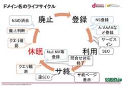 ドメインを廃止する場合は、一度休眠させ、検索エンジンや被リンクサイトへの削除依頼、アーカイブサイトからのコンテンツ削除といった逆SEO対策を行い、DNSクエリ数があらかじめ定めた“しきい値”を下回ってから判断する、といった運用を推奨している。