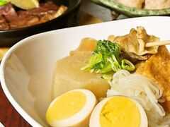 関西風の薄味おでんに、生姜醤油をかけていただきます。地元で一般的な食べ方だったものが、ご当地グルメとして広く知られるようになりました。生姜醤油は、生姜と醤油のみ、みりんや...