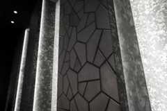 "Kimono tiles" are unique tiles that utilize Kyoto's traditional roof tile making techniques and are combined to resemble kimono patterns. This time-honored material is elevated to new heights of beauty through a modern sensibility, creating a space where tradition and modernity beautifully blend.