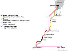 | Tsuruga - Tomakomai | 1 per day | 21 hours | 12,000 yen | 24,000 yen | 37,500 yen |
