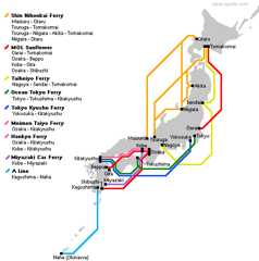 Consisting of several thousand islands, Japan is naturally home to an extensive network of ferry routes. Japan's four main islands (Honshu,Hokkaido,Kyushu andShikoku) are connected with each other by bridges and tunnels, but many smaller islands can only be reached by ship. Yet even between the main islands, ferries can be an interesting, if not particularly fast alternative totrains,buses andplanes.