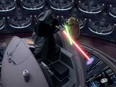 Zur selben Zeit waren Quinlan Vos, Luminara Unduli und Yoda mitsamt einer großen Streitmacht aufgebrochen, um die Droidenarmee daran zu hindern den PlanetenKashyyykeinzunehmen.[145] Zwar war es Yoda und seinen Truppen möglich, die Zerstörung der Ölraffinerien Kashyyyks zu verhindern, doch die Verluste unter den Klonen und Wookiees waren schwer.[144] Zur gleichen Zeit war es Obi-Wan Kenobi auf Utapau gelungen, General Grievous ausfindig zu machen, der den Rat instruierte nach Mustafar zu reisen. Nur kurze Zeit später erreichte eine große republikanische Armada den Planeten und begann damit, Truppen in die Planetenlöcher abzulassen, um die separatistischen Truppenanzugreifen. Kenobi verfolgte den Cyborg, während der Rat der Separatisten den Planeten verlassen konnte. Es gelang ihm den General an einem von der Schlacht abseits gelegenen Startbereich festzusetzen und anzugreifen. Während des Kampfes verlor der Jedi-Meister zwar sein Lichtschwert, konnte jedoch den Droiden-General rechtzeitig mit einem Blaster treffen und ihn somit töten. Während dieser Ereignisse machte Anakin Skywalker eine beunruhigende Entdeckung auf Coruscant. Nachdem Skywalker Palpatine in seinen Gemächern aufgesucht hatte, offenbarte der Kanzler ihm, dass er der gesuchte Sith-Lord war. Mit der Rückkehr in den Tempel berichtete Anakin Skywalker Mace Windu von seiner Entdeckung, sodass sich der Jedi-Meister aufmachte, um Sidious zu töten. Als sich Mace Windu diesem entgegen gestellt hatte und Palpatine zu Boden rang, erschien Skywalker, der zwiegespalten über Windus Meinung war, Palpatine zu töten. Als Mace Windu zum finalen Schlag ausholte, zog Skywalker sein Lichtschwert und schlug diesem die Hand ab, sodass Sidious mittels Macht-Blitzen zuschlug und den Jedi-Meister in die Häuserschluchten Coruscants beförderte, sodass er starb. Momente später ernannte der durch Windus Angriff deformierte Palpatine Anakin Skywalker zum Sith-Lord und gab ihm den Namen Darth Vader. Die erste Aufgabe des neu berufenen Dunklen Lords bestand darin den Jedi-Tempel zu stürmen und anschließend nach Mustafar zu reisen, um den Rat der Separatisten auszulöschen und anschließend von dort aus die Droidenarmee zu deaktivieren, sodass die Republik einen Sieg davon tragen konnte.[32]