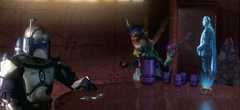 Einige Zeit nach den Ereignissen auf Teth und Coruscant beauftragte Jabba den KopfgeldjägerCad Bane, um die Pläne des Senats zu erlangen. Dazu wollte Bane denProtokolldroiden der Senatorin Padmé Amidala,C-3PO, gefangen nehmen, von dem er die Informationen zu erhalten hoffte. Er merkte jedoch bald, dass C-3PO die Pläne nicht enthielt, sondern der Droide R2-D2. Der Kopfgeldjäger entnahm dem Droiden die Daten und ließ ihr Gedächtnis löschen, bevor er sie wieder auf die Straße brachte. Danach kehrte Cad Bane nach Tatooine zurück, wo er Jabba die Pläne überbrachte und seine Bezahlung erhielt. Jabba berief daraufhin eine Konferenz der fünf Hutt-Familien ein, die schließlich entschieden, dass Bane den Hutten Ziro aus seinem Gefängnis auf Coruscant befreien sollte und nachNal Hutta bringen sollte, da er angeblich für die Hutt-Familien gefährliche Informationen besaß.[73] Später wurde im Senat über einenGesetzesentwurf entschieden, der die Privatsphäre der Senatoren einschränken sollte. Unter den Gegnern des Vorschlags waren unter anderem Amidala von Naboo und Bail Prestor Organa vonAlderaan, die lange gegen seine Verabschiedung gekämpft hatten. Zur gleichen Zeit gelang es Bane, in das Senatverwaltungsgebäude einzudringen und eine Gruppe Senatoren in seine Gewalt zu bringen. Die Freilassung des Hutten Ziros aus dem Gefängnis fordernd, platzierten die Kopfgeldjäger Detonationssprengköpfe in der Verwaltungshalle. Nachdem Ziro das Gefängnis verlassen hatte und Bane mitsamt seinemGefolge dem Hutten wegflog, ließ derDuros die Sprengköpfe detonieren, um die Senatoren zu töten. Skywalker, der sich ebenfalls im Gebäude befand, konnte die Politiker jedoch rechtzeitig befreien und vom Tod retten.[74]