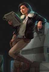 Mirax Terrik wurde geboren, als dieGalaktische Republik in das Imperium unter demImperatorPalpatine überging, und wuchs auf dem in denKernwelten gelegenenPlanetenCorellia auf.[18] Ihr Vater war der renommierte Schmuggler Booster Terrik, den eine enge Freundschaft mit derFamilie Antilles verband, weshalb Mirax in ihrer Kindheit viel Zeit mit Wedge Antilles verbrachte. Die beiden gaben einander die Spitznamen Myra und Veggies.[2] Mirax' MutterJysella Terrik verstarb, als ihre Tochter noch ein Kind war, weshalb Booster sie allein großzog.[19] Daher ließ er sie bei riskanten Aufträgen oft bei der Familie Antilles, nahm sie mit zunehmendem Alter aber auch gelegentlich mit, wenn er von der Ungefährlichkeit einer Reise überzeugt war, um sie das Schmugglerhandwerk zu lehren.[20] Zu den Aktivitäten, die Mirax und Wedge als Kinder gerne unternahmen, gehörte unter anderem das Herumtüfteln an denRaumschiffen der Familien. Der Kontakt der beiden brach jedoch für mehrere Jahre ab, als Wedges ElternJagged undZena von demPiratenLoka Hask ermordet wurden und ihr Sohn sich daraufhin von Corellia zurückzog.[2] Mirax' Vater wurdezwei Jahre vor derSchlacht von Yavin vonHal Horn, einem Agenten desCorellianischen Sicherheitsdiensts, festgenommen und aufgrund seiner Schmuggleraktivitäten auf denGefängnisasteroidenKessel gebracht.[19] Infolgedessen entwickelte Mirax einen tiefen Hass auf dieFamilie Horn.[1] Nach der Inhaftierung ihres Vaters übernahm Mirax, obwohl sie noch nicht volljährig war, Boosters Geschäfte sowie dessen Raumschiff, diePulsarrochen, und wurde selbst zu einer Schmugglerin. Dabei war sie bemüht, Marktlücken zu erschließen und auf diese Weise die Profitabilität der Operationen ihres Vaters zu erhalten, bis er seine Strafe abgesessen hätte.[2] Anstatt illegale Ladungen zu befördern, die nach Abzug aller Unkosten kaum Gewinn einbrachten, spezialisierte sie sich auf Exotika, für die wohlhabende Interessenten viel Geld auszugeben bereit waren. Zu Beginn ihrer Karriere waren es vor allem der Ruf ihres Vaters sowie Sympathie wegen seiner aktuellen Lage, die ihr Legitimität und Zugang zur imperialen Schattenwirtschaft verschafften. Schon bald erarbeitete sich Mirax jedoch einen eigenen Ruf und trat aus dem Schatten ihres Vaters hervor.[20] Ihr Hauptkonkurrent dabei war anfangsJorj Car'das, der sich wie Mirax ebenfalls einen großen Teil der Geschäfte ihres Vaters einverleibte.Fünf Jahre nach seiner Verhaftung – einige Monate nach derSchlacht von Hoth – wurde Booster aus dem Gefängnis entlassen.[19] Er nahm allerdings zunächst keinen Kontakt zu seiner Tochter auf, um nach Kessel Abstand zu seiner Tochter zu halten und durch die Galaxis zu streifen, und überließ ihr daher weiterhin die Leitung der Operationen sowie diePulsarrochen.[20]