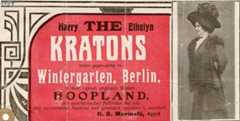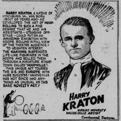 At the beginning of the twentieth century, hoop rolling juggling acts were quite popular. The genre began with William Everhart of Columbus, Ohio, who began performing with hoops around 1888. By the early 1900s, performers such as Ollie Young, Paul Renner, and the Alpha Troupe were popular acts on vaudeville stages and music halls. Perhaps the most unique hoop rolling act was performed by the Kratons. The Kratons was headed by the husband and wife team of Harry and Ethelyn Kraton.