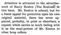 Harry Kraton and his troupe were some of the most successful African-American performers in all of Vaudeville. Harry was a champion of the inclusion of black performers on Vaudeville and music hall stages and even wrote a piece for Variety calling for the acceptance of other African-American acts.