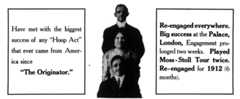 At times, there were multiple versions of the act performing. Part of the troupe might be in the USA while another part was in Europe. When Harry and Ethelyn were in the act, it was called Hoopland. When other members did the act without them, it was referred to as Hoopville.