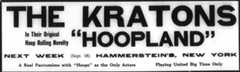 The hours of practice and skill required to put this act together was undoubtedly lost to the layman, but all jugglers who saw the act realized the great effort, and perfect teamwork and timing that was necessary to make the routine run smoothly. While I never saw or heard of The Kratons stopping a show with this act, it was nevertheless one of those good old standby acts that always worked. So my hat’s off to them for their original “Hoops Are People” idea.