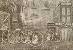 Hoops represented people. Different colored hoops meant different people. The smaller ones were for the children. Hoops came out of a store and entered a dwelling. Some went into the church and others went into the factory. One hoop came out of the saloon, staggered around, and landed happily against a friendly lamppost. Some of them just sauntered down the street and disappeared. A bell rang, the school door opened, and out rushed the children headed in every direction. The factory whistle blew, and out came the workers. Some went down the street, others went into the various buildings, and a considerable group hightailed it for the saloon.