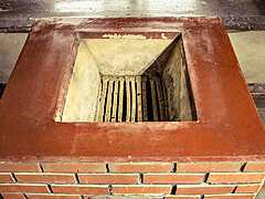 囲炉裏は天井まで4本の柱と壁が立ち、煙を天井から屋根の外に抜くようにできています。火袋には小棚が設けられており、弁財天さまをおまつりしています。ただし、その由来などについては伝わっていません。