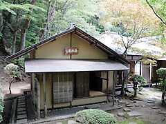 蟠龍庭の一隅にある茶室は、昭和40年(1965年)の高野山開創1150年記念法会の際、松下幸之助氏より寄贈されたもので、前総理大臣佐藤栄作氏により「真松庵」と名付けられました。部屋数は8畳、6畳、4畳半の三間と水屋で本格的な茶室造りとなっています。