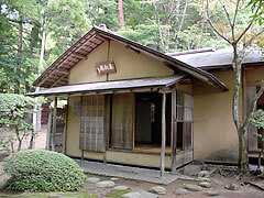 【重要文化財】以前は皇族方のご休憩所として使用された所で、現在はもっぱら儀式に使用されています。防寒用として座敷内に囲炉裏があり、冬は薪をたいて暖をとりました。