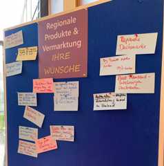 Pinnwand mit Änderungswünschen der Teilnehmenden zur Vermarktung regional erzeugter Lebensmittel