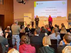 Referentinnen und Referenten informierten unter dem LeitthemaBegehrtes Land - Nutzungskonkurrenzen auf Landwirtschaftsflächen in Vorträgen und einer Podiumsdiskussion zu unterschiedlichen Hintergründen und Problemfeldern im Zusammenhang mit knapper werdenden Flächenreserven. Vertreterinnen und Vertreter derAgiL - Sächsische Agentur für Regionale Lebensmittel und derBio-Regio-Modellregion Leipzig-Westsachsen stellten ihre Beratungs- und Vernetzungsangebote für die Stärkung regionaler Wertschöpfungsketten vor.