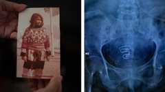A gauche: Naja Lyberth avait 13 ans quand elle s’est fait poser une «spirale» contre son gré. A droite: une radiographie montrant un stérilet de type «spirale», trop gros pour des corps de jeunes filles qui n’ont pas enfanté. — © Juliette Pavy