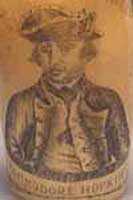 Etched on this horn beaker is Esek Hopkins (1718-1802), a Rhode Islander, appointed by Congress, December 22, 1775, as the first commander-in-chief of the American Navy. Hopkins was dismissed, January 2, 1778, after a stormy tenure in which he achieved some notable successes in spite of almost insuperable problems in manning the tiny American fleet.