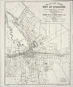Photo, Print, DrawingThe 1867 SA&K flatiron (wedge-shaped like a steam iron) building, now called City Hall Commons, a municipal building in Syracuse, New York