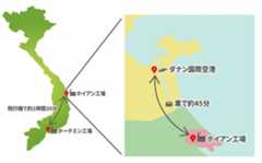 ホイアン工場は、ダナン空港から車で約40分、ホイアン市街地から10分の場所に位置し、ダナン国際空港、ティエンサ港、チューライ港に囲まれた「物流の黄金三角形」とされるエリア内に立地。アクセス性と輸出拠点としての優位性を兼ね備える。主要設備はマシニングセンター、汎用旋盤、三次元測定機などで、生材加工や中ロット品対応、自社製品の組立にも対応する。