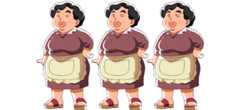 長屋で駄菓子屋を営む中年の3つ子で、長屋の全住人の食事作りも担当している。それぞれの名前はヒトエ、フタエ、ミツエといい、何をするにも3人一緒で、長屋に人が訪れた時などは、それぞれがもてなしたもののうち、相手がどれを手にとるかを常に競っている。未婚。