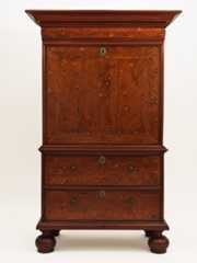 Many of the objects identified as strengths of the furniture collection have verifiable provenance documenting their commission or ownership by distinguished New Yorkers such as John Jay (1745-1829), second Governor of New York State and first Chief Justice of the United States; DeWitt Clinton (1769-1828), Mayor of New York City, Governor of New York State, and Senator from New York State; and Al Smith (1873-1944), Governor of New York State. Examples of pieces with documented ownership histories within New York City’s founding families include a large group of furniture belonging to turn-of-the-20th century real estate developer and philanthropist Henry Harkness Flagler (1870-1952), a fall-front secretary likely commissioned by landowner Joris Brinckerhoff III (1664-1729), and a large group of furniture commissioned or owned by merchant Stephen Whitney (1776-1860)