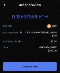 In the above $200 transactions, a Coinbase user pays a flat fee of $2.99 to buy Bitcoin – about 1.5%. The conversion from Bitcoin to Ethereum is free.