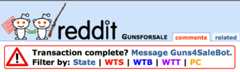 Many Redditors are careful to advertise that they comply with the law when shipping across state lines. But in-state sales are another matter—including the potential to exploit a well-known loophole in federal law, which exempts “private transactions” from background checks. Theguidelines page for GunsForSale instructs Redditors to suffix the title of their posts with the states they operate in, noting: “Sellers can prefer not to ship a firearm out of state, but do an in-state face-to-face transaction.”