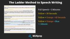 You should also be prepared to make a number of speeches. Speeches are important as they can help to show your involvement in-committee. It’s a useful way to quickly summarize your position on a topic to all the delegates and to your dais.