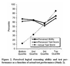 これは「ダニング=クルーガー効果」としてよく知られているものだそうです。ミシガン大学のダニングと、イリノイ大学のクルーガーは、「ある論文」の著者の名前です。それが下記の論文。