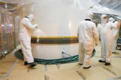 The material in the inert segments is cast so that they have the same weight and balance characteristics as flight segments.