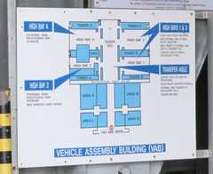Placard as seen entering the VAB in 2012. Cranes will lift the fully prepped booster segments up sixteen stories where they can cross from left to right in the diagram, going from High Bay 4 to High Bay 3. Credit: Philip Sloss for NSF/L2.