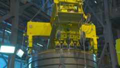 After the beam is attached to the segment, it is lifted over to another workstation. “That’s station 3,” Chreist noted. “We lower the segment and put it down on there and what we can do is we can prep the tang, we do the inspection for the O-rings, we re-grease it and we prep it prior to doing mating operations.”