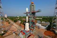 The 52 m tall GSLV Mk. II, capable of flying up to around 3,000 kg to Sun-synchronous orbit (SSO), is a three stage launch vehicle with four liquid-fueled strap-on boosters that stay attached to the first stage throughout its flight. The first stage is solid-fueled, while the second stage, like the four strap-on boosters, is powered by a Vikas engine using storable but highly toxic liquid hypergolic propellants.