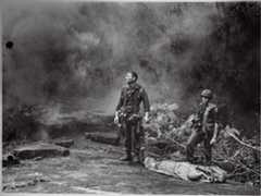 U.S. soldiers share a light for cigarettes amid smoldering ruins in Seoul, South Korea, in September 1950. The Korean War marked the first time a U.S. president committed troops to a large-scale foreign conflict without a Congressional declaration of war.