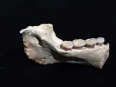 Tools made from bone and teeth were used to hunt small monkeys and squirrels, work skins or plants, and perhaps create nets at Fa-Hien Lena, Sri Lanka. Here a possible net shuttle, monkey tooth awl/knife, and projectile point are shown.