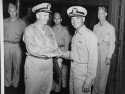 ![]() NS0302621 | 144k | "AdmiralV.H. Ragsdale shaking hands with CaptainM.E. Browder upon departure from ship after being relieved asCom Car Div 22."(See"Flag Admirals & Commanding Officers"). | Brian Bartlett, via Don Schroeder | |