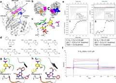 As described in detail elsewhere, we discovered that anthranilic acids bind the ANS allosteric pocket of CDK2 using a combination of high-throughput and virtual screening27. The first compound crystallized of this series was1, which binds CDK2 with low micromolar affinity as measured by isothermal titration calorimetry (ITC) and by surface plasmon resonance (SPR) using the steady-state approximation (SSA) affinity fit (Fig. 1a–f, Supplementary Figs. 1–3, Supplementary Table 1).