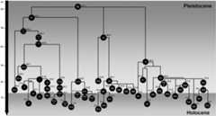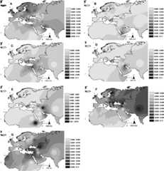 The BSP obtained from the overall data (Figure S2A) shows a continuous, slightly stepped increase from ∼15 ka ago almost to the present (Table 1). The BSP with only the European data (Figure S2B) separates two steps (∼13 ka and ∼6 ka ago), whereas the BSP for the pool of the Near East and Arabian Peninsula (Figure S2C) indicates only a period of increase, which was initially gradual, from ∼15 ka ago.