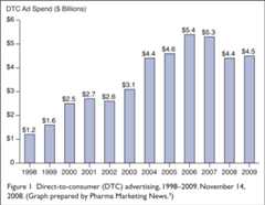 Direct-to-consumer (DTC) advertising, 1998–2009. November 14, 2008. (Graph prepared by Pharma Marketing News.3)