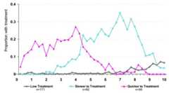 | Low Treatment (n=171) | Slower to Treatment (n=82) | Quicker to Treatment (n=95) | |