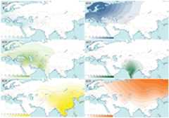 Frequency data (ancestry fractions) were converted by applying the Kriging algorithm using the software Surfer v8.00. The color for the respective ACs matches that ofFigures S1 andS2.