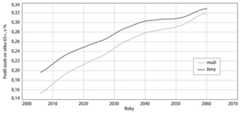 Na základě pozorovaných trendů bylo odhadnuto, že pokles úmrtnosti v případě švédských mužů dosahuje v průměru 2 % ročně, pro ženy pak 1 % ročně. Při výpočtech předpokládáme, že tato tempa poklesu zůstávají pro obě pohlaví neměnná v čase a neliší se v různých věkových skupinách. Zmíněná rozdílná rychlost poklesu úmrtnosti pro muže a ženy během uplynulých 3 desetiletí je pravděpodobně zodpovědná za zmenšující se rozdíl střední délky života pro obě pohlaví pozorovaný v posledních letech ve většině vyspělých zemí (Glei – Horiuchi, 2007).