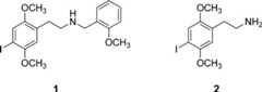 Recently, an extremely potent hallucinogenicphenethylamine, 25I-NBOMe(N-(2-methoxybenzyl)-2,5-dimethoxy-4-iodophenethylamine;“smiles”)1 has been available on the illicitdrug market.1 For purposes of enforcement,it is presently considered by the Drug Enforcement Administration(DEA) to be an analogue of 2C-I (2), which is currentlya Schedule I controlled substance. The procedure to classify1 as a Schedule I substance has been initiated, and it hasbeen placed temporarily into Schedule I.2 Unfortunately, several deaths have been associated with the useof1,3−5 but it is not clear whether the deaths resulted fromthe ingestion of lethal amounts of pure solid drug, or whether thedrug has some inherent toxicity that is not normally associated withother hallucinogens.