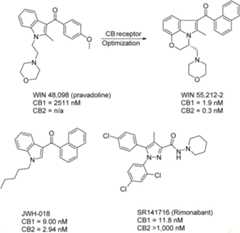 - 109.Huffman JW, Dai D, Martin BR, Compton DR. Design, synthesis and pharmacology of cannabimimetic indoles. Bioorg Med Chem Lett. 1994;4(4):563–6. [Google Scholar]